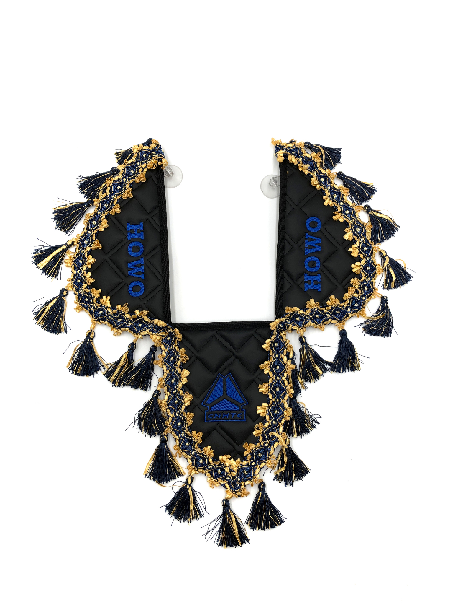 Вымпел тройной HOWO (экокожа, черный с синими кисточками)